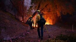 Firefighters fought on into the night on Saturday in a bid to get on top of massive wildfires around Los Angeles as winds ramped up,…