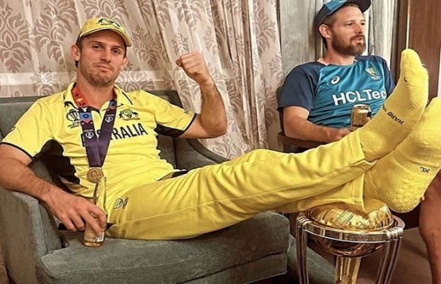 Australian all-rounder Mitchell Marsh faced criticism from fans after a photo circulated showing him resting his feet on the World Cup trophy. Despite the uproar, Marsh staunchly defended the gesture, stating, “There was obviously no disrespect meant in that photo at all, I haven’t given it too much thought; there’s nothing in that.” The incident occurred shortly after Australia secured their sixth ODI World Cup title by defeating India by six wickets. Captain Pat Cummins shared the contentious image on Instagram, sparking a social media frenzy. When asked if he would repeat the act, Marsh candidly responded, “Yeah probably, to be honest.” The photo did not sit well with Indian fans, with fast bowler Mohammed Shami expressing his displeasure, saying, “Keeping a foot on that trophy did not make me happy.” The controversy lingered as the two teams faced off in a five-match T20 series just four days after the World Cup final. Mitchell Marsh voiced concerns about scheduling such significant series immediately after ICC tournaments, emphasizing the need for players to celebrate with their families. He acknowledged the delicate balance, stating: “It’s a fine line because we’ve got to respect the fact we’re playing for Australia.” However, he added, “The boys have just won a World Cup and probably deserve to celebrate for a while.” Reflecting on the situation, Marsh expressed hope for reconsideration in future scheduling, stating, “You’d hope there’s not too many of those series put on after big tournaments again.” While seven members from Australia’s World Cup-winning team initially stayed in India for the T20I series, six have since returned home, leaving Travis Head as the lone member continuing for the remaining two games.