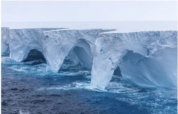 Erosion sculpts spectacular caves, arches in world’s largest iceberg