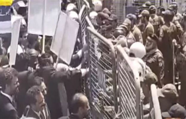 Chaos ensued near the Lahore High Court Wednesday after lawyers, demonstrating against the division of civil courts and terrorism cases against their colleagues, were baton-charged by the police at the GPO Chowk. The protesting lawyers tried to enter the high court by removing the barricades around its premises and threw stones at the police. Meanwhile, the police baton charged and began shelling to disperse the lawyers and blocked their way to the court’s main gate. The police is also using water cannons to stop the lawyers from moving forward. A heavy contingent of police has been deployed at judges’ gate of Lahore High Court, while the police has also arrested one of the protesting lawyers. Meanwhile, traffic flow at Mall Road and adjoining roads has also been severely affected.