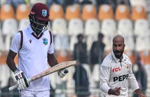 Spinner Sajid Khan took five wickets and Abrar Ahmed another four to guide Pakistan to a 127-run win on the third day of the first Test against West Indies in Multan on Sunday. Sajid took 5-50 for match figures of 9-115, while leg-spinner Abrar Ahmed snared 4-27 as West Indies were dismissed for 123, falling well short of their victory target of 251. Pakistan’s spinners took all the wickets in West Indies’ second innings, with Noman Ali chipping in with 1-42, as the home side took an early advantage in the two-Test series. Left-handed batter Alick Athanaze hit 55, the only half-century of the match for the tourists, and added 41 runs for the sixth wicket with Tevin Imlach. Sajid removed the dangerous Athanaze, while Abrar’s haul included the final wicket of Jomel Warrican. Left-armer Warrican had led the spin attack for the tourists with a career-best 7-32 as Pakistan were bowled out for 157 in their second innings. They were also the best figures by a West Indian bowler in Pakistan, topping fast bowler Malcolm Marshall’s 5-33 at Lahore in 1986. The Test lasted fewer than eight sessions, with the start delayed on the first day by poor visibility. The Multan pitch provided sharp turn, with Sajid taking the wickets of skipper Kraigg Brathwaite (12), Keacy Carty (six), Kavem Hodge (0) and Mikyle Louis (13). Noman then trapped Justin Greaves leg before wicket for nine in the last over before lunch, leaving the tourists tottering on 54-5. Pakistan had resumed earlier on 109-3 but managed to add just 48 runs. Warrican’s nagging line and length earned him match figures of 10-101, his first 10-wicket match haul. He dismissed overnight batter Saud Shakeel for two with the first ball of the day and then had Mohammad Rizwan for the same score in his next over. Warrican continued the demolition act with the wickets of Kamran Ghulam (27), Noman (nine) and Sajid (five). The second match starts on January 25, also in Multan.