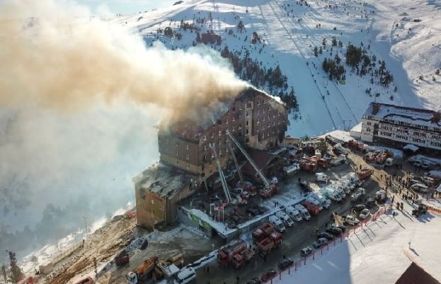 A fire at a ski resort hotel in Turkiye’s Bolu mountains killed 66 people on Tuesday and forced panicked guests to jump out of windows in the middle of the night. Some 51 people were injured, Health Minister Kemal Memisoglu said at the Kartalkaya ski resort in northwest Turkey. The blaze began around 3:30am (0030 GMT) on the restaurant floor of the 11-storey Grand Kartal Hotel, authorities said earlier. Several fire engines surrounded the charred building, with white bed sheets tied together and dangling from one upper-floor window where guests attempted to flee. The fire comes at the beginning of a nationwide two-week school holiday, a time when skiers from nearby Istanbul and Ankara usually head to the Bolu mountains. TV footage showed several fire engines surrounding the charred hotel at the base of the ski slopes, with white bed sheets tied together and dangling from one upper-floor window. Investigators were looking into what caused the blaze, authorities said.