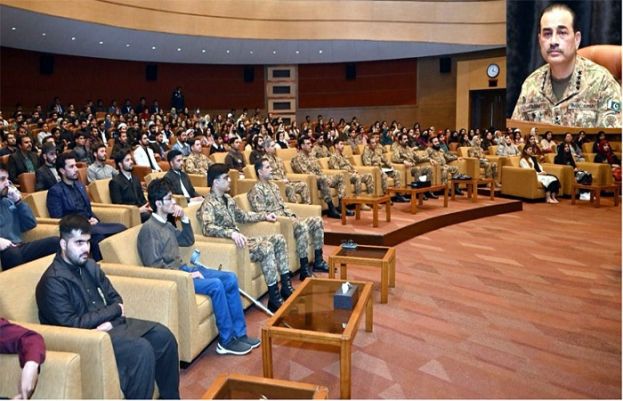 Chief of Army Staff, General Syed Asim Munir, has encouraged students to strive for excellence in their academic pursuits to contribute positively to the country’s progress. He was addressing a gathering of young university and college students, representing youth from all across Pakistan, in Rawalpindi today. During his interaction, the Army Chief also shared perspective on the impact of external environment on Pakistan, especially the threat from trans-border terrorism. General Syed Asim Munir praised the youth for their energy, creativity, and ability to innovate, stating that they are the future leaders of Pakistan. He highlighted the role of the Pakistan Army in safeguarding the country’s sovereignty and territorial integrity. He honored the sacrifices of people of Pakistan in nation’s struggle against the menace of terrorism, and appreciated their resolute support to the Armed Forces and Law Enforcement Agencies. Emphasizing the need to imbibe ‘Pakistaniat’, the Army Chief highlighted the significance of Pakistan’s history, culture, and values in the intellectual development of our youth.