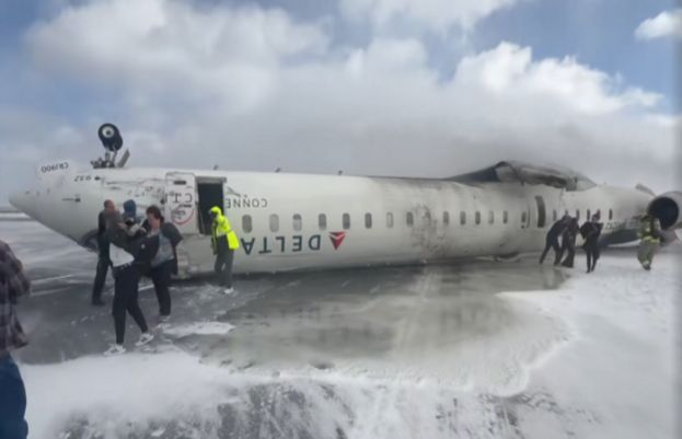 Delta Air Lines regional jet flipped upside down upon landing at Toronto Airport