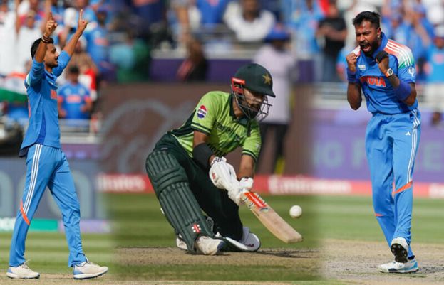 Pakistan’s batting firepower has faltered again as they set a modest target of 242 runs against India with Saud Shakeel only batter to score a half-century in the do-or-die clash for their side in the ICC Champions Trophy 2025 being played at Dubai Cricket Stadium on Sunday. With the cricket fever at its highest, Pakistan are batting first against their arch-rivals, India, after winning the toss in the high-stakes Champions Trophy showdown at the Dubai Cricket Stadium. Pakistan scored 241 in 49.4 overs as they struggled to set a competitive target against India. Kuldeep Yadav struck again as he sent off Naseem Shah (14) in 46th over. Salman Ali Agha and Khushdil failed to build a partnership as the vice-caption was ousted by Kuldeep for 19 runs. On the very next delivery, Kuldeep removed Shaheen Shah Afridi. After Pakistan lost their openers, Babar Azam and Imam-ul-Haq, Pakistani skipper Mohammad Rizwan joined Saud Shakeel at the crease. Shakeel hit a half-century while Rizwan got out before completing his fifty. Tayyab Tahir fell prey to Ravindra Jadeja for just four runs. Indian bowlers Hardik Pandya and Kuldeep Yadav struck to make a breakthrough for India just when the Men in Green looked to have gained a bit of stability. Speaking at the toss, Pakistan skipper Mohammad Rizwan expressed confidence in his team’s performance. Noting that the players were familiar with the conditions in Dubai, Rizwan said that the team would put up a good total on the scoreboard and added that the pitch might be slow in today’s fixture with dew expected to come into play in the evening. The skipper further confirmed the inclusion of Imam-ul-Haq in the team who has replaced injured Fakhar Zaman. Meanwhile, Indian captain Rohit Sharma said that he would’ve also opted to bowl first. Commenting on the conditions, Sharma pointed out that today’s pitch was similar to the previous match. Playing XI Pakistan: Imam-ul-Haq, Babar Azam, Saud Shakeel, Mohammad Rizwan (C/WK), Salman Ali Agha, Tayyab tahir, Khushdil Shah, Shaheen Shah Afridi, Naseem Shah, Haris Rauf and Abrar Ahmed. India: Rohit Sharma (C), Shubhman Gill, Virat Kohli, Shreyas Iyer, Axar Patel, KL Rahul (WK), Hardik Pandya, Pavindra Jadeja, Harshit Rana, Mohammad Shami, Kuldeep Yadav.