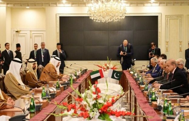 Pakistan and the United Arab Emirates on Thursday signed multiple memorandums of understanding (MoUs) to enhance bilateral cooperation in diverse fields, including banking, mining, Railways and infrastructure. The development came during the maiden visit of Abu Dhabi Crown Prince Sheikh Khaled bin Mohamed bin Zayed Al Nahyan to Pakistan. He arrived in Pakistan at the invitation of Prime Minister Shehbaz Sharif. The Abu Dhabi Crown Prince was given a guard of honour as he arrived at the Prime Minister House in Islamabad. PM Shehbaz Sharif and President Asif Ali Zardari received the Gulf nation’s top leader in the federal capital. President Zardari conferred the “Nishan-e-Pakistan” on the Abu Dhabi crown prince in recognition of his services for bringing the two nations closer and taking Pak-UAE ties to new heights. The top civilian award was conferred on the crown prince at a special investiture ceremony at the Aiwan-e-Sadr and attended by PM Shehbaz, Deputy Prime Minister Ishaq Dar, Senate Chairman Yusuf Raza Gilani parliamentarians, diplomats, and senior officers. Sheikh Khaled is accompanied by a high-level delegation, including ministers and senior officials, as well as prominent business leaders, the Foreign Office said in a statement. This visit underscores the deep-rooted fraternal ties between Pakistan and the United Arab Emirates (UAE) and reflects the shared commitment to further strengthen bilateral economic partnership. During the visit, the crown prince will engage in wide-ranging interactions with the leadership of Pakistan, to exchange views on matters of mutual interest, reinforce historical bonds and promote economic as well as investment cooperation. Several agreements and memorandums of understanding (MoUs) will be signed during the visit to bolster the existing robust framework for long-term collaboration in multifaceted sectors. “These commitments are expected to open new opportunities for joint ventures and projects aimed at furthering economic cooperation between both the countries and their peoples,” the statement read. Pakistan and the UAE have always enjoyed a relationship characterised by mutual respect, trust, and shared aspirations, the FO spokesperson added. “The visit of Crown Prince Sheikh Khaled bin Mohamed bin Zayed Al Nahyan demonstrates the commitment of two countries to elevate the cooperation, reflective of a growing partnership and robust people-to-people linkages,” it concluded. Last month, UAE President Sheikh Mohamed bin Zayed Al Nahyan visited Pakistan and received a warm welcome in Rahim Yar Khan from PM Shehbaz, Punjab Chief Minister Maryam Nawaz, Defence Minister Khawaja Asif, Information Minister Attaullah Tarar, and others.