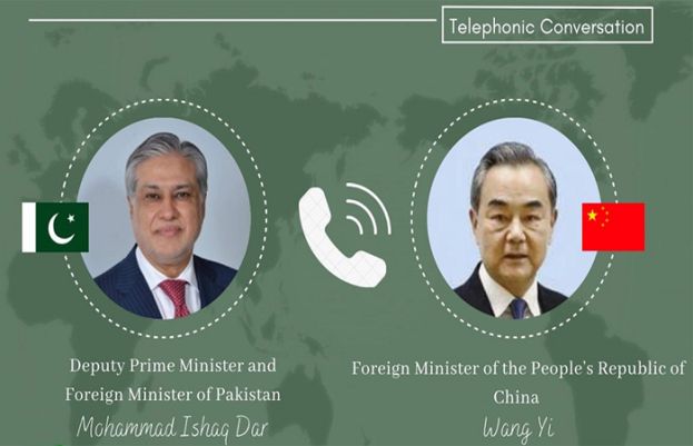 Pakistan and China have reiterated their firm resolve to uphold regional peace and stability, promote mutual respect and understanding, and jointly oppose unilateralism and hegemonic policies. The understanding was reached during a telephone conversation between Deputy Prime Minister and Foreign Minister Senator Mohammad Ishaq Dar and Chinese Foreign Minister Wang Yi on Sunday. During the conversation, Senator Mohammad Ishaq Dar briefed Chinese Foreign Minister Wang Yi on current regional situation. He categorically rejected India’s unilateral and illegal actions, as well as its baseless propaganda against Pakistan. Expressing deep appreciation for China’s consistent and unwavering support, the Deputy Prime Minister and Foreign Minister reaffirmed Pakistan’s strong commitment to the iron-clad Pakistan-China friendship and the shared vision of an All-Weather Strategic Cooperative Partnership. He emphasized Pakistan’s determination to further deepen bilateral cooperation across all spheres. Both sides agreed to maintain close communication and coordination at all levels to advance their shared objectives of peace, security, and sustainable development in the region and beyond.