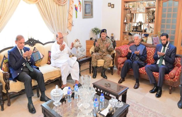 Prime Minister Muhammad Shehbaz Sharif visited the residence of Shaheed Squadron Leader Usman Yousaf in Rawalpindi today and offered condolences to the family of Shaheed. Defence Minister Khawaja Asif, Information Minister Attaullah Tarar and Chief of Army Staff General Syed Asim Munir also accompanied the Prime Minister. They offered fateha for the martyr and prayed for the elevation of his ranks.