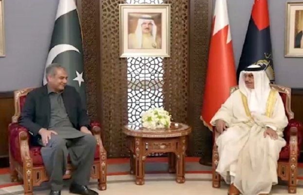 Pakistan and Bahrain have agreed to enhance their security cooperation and to strengthen the role of their joint security committee to better address regional and global challenges. The understanding was reached during comprehensive talks between Interior Minister Mohsin Naqvi and his Bahraini counterpart, General Sheikh Rashid Bin Abdullah Al-Khalifa, held in Manama. During the meeting both sides exchanged views on matters of mutual interest. Earlier, Mohsin Naqvi arrived in Bahrain’s capital Manama on one-day official visit, where he was warmly received by Bahrain’s Interior Minister General Sheikh Rashid Bin Abdullah Al-Khalifa at the airport. A guard of honour was presented to him on his arrival at the Bahrain Interior Ministry headquarters, “Manama Fort”. Later, the Pakistani minister held in-depth talks with his Bahraini counterpart and exchanged views on matters of mutual interest. During the meeting, both dignitaries vowed to strengthen bilateral cooperation on security matters. The two interior ministers also laid their focus on bilateral cooperation while dealing with issues of terrorism, human smuggling and narcotics. Mohsin Naqvi and his Bahraini counterpart also agreed to make more effective the joint security committee to address regional and international challenges. While praising the cooperation and coordination on bilateral security and other sectors, Bahrain’s Interior Minister said the Pakistani minister’s visit will further bolster the bilateral relations and security ties. Mohsin Naqvi said that both countries should undertake joint measures to curb human and narcotics smuggling. The Interior Minister invited his Bahraini counterpart to visit Pakistan. Later, Mohsin Naqvi wrote down his comments in a book kept at Bahrain’s interior ministry.