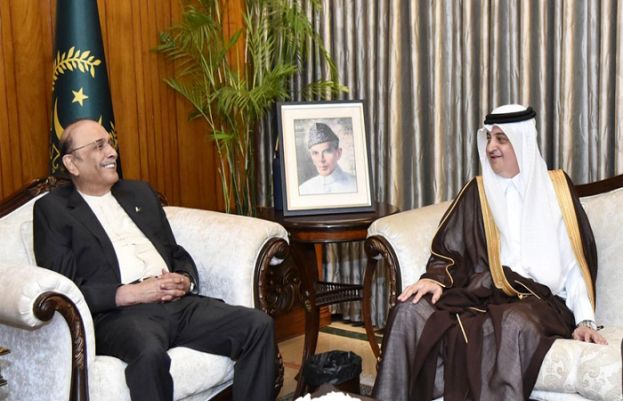 President Asif Ali Zardari has invited Saudi investors to explore investment opportunities in various sectors of the Pakistani economy. He was talking to Saudi Ambassador Nawaf bin Said Al-Malki, who called on him in Islamabad on Friday. The President noted that both countries share common views on regional and international issues and support each other at multilateral fora. He said Pakistan and Saudi Arabia enjoy deep-rooted and historic relations based on shared faith and mutual trust. He emphasized the need to further expand these ties for the mutual benefit of the two brotherly nations. President Asif Ali Zardari expressed gratitude to the Kingdom of Saudi Arabia for its support to Pakistan in times of need. He also asked the ambassador to convey his warm greetings and best wishes to the Custodian of the Two Holy Mosques, King Salman bin Abdulaziz and Crown Prince Mohammed bin Salman. Interior Minister Mohsin Naqvi also attended the meeting.