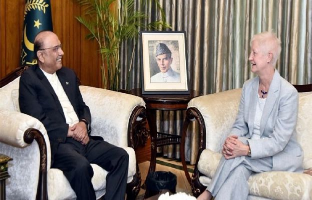 President Asif Ali Zardari has said that Pakistan attaches great importance to its multi-dimensional partnership with the European Union. He was speaking to the outgoing Head of the European Union Delegation to Pakistan, Dr. Riina Kionka, who called on him in Islamabad today (Tuesday). The President said that a strong Pakistan-EU relationship contributes immensely to the regional stability and global security. He highlighted that the European Union is one of Pakistan’s largest trade and investment partners. He mentioned that there is vast potential to further expand development cooperation with the European Union, given Pakistan’s large young population and significant industrial growth prospects. President Asif Ali Zardari congratulated Dr. Riina Kionka on the successful completion of her tenure in Pakistan and lauded her valuable contributions to further strengthening Pakistan-EU relations.