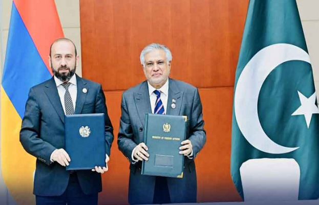 In a significant step toward expanding Pakistan’s global diplomatic outreach, Deputy Prime Minister Ishaq Dar on Sunday formally exchanged a Joint Communiqué with Armenian Foreign Minister Ararat Mirzoyan, officially establishing diplomatic relations between the two countries. A ceremony to this effect was held in Tianjin, China. Marking a historic step forward, both the leaders affirmed their commitment to the principles and objectives of United Nations Charter and discussed possible avenues of cooperation including economy, education, culture, and tourism. The two leaders reaffirmed their desire to work closely with each other at bilateral and multilateral fora, to achieve their shared objectives of peace, progress, and prosperity for the peoples of their two countries.