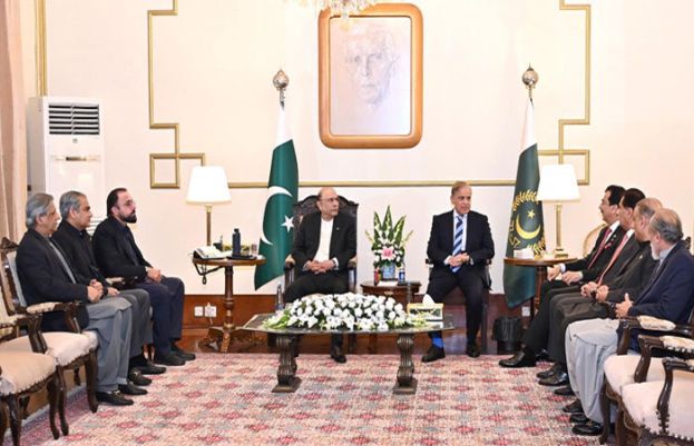 Prime Minister Shehbaz Sharif called on President Asif Ali Zardari at Aiwan-e-Sadr on Tuesday. The overall security and political situation in the country came under discussion during the meeting.Condemning the recent acts of terrorism, the two leaders reaffirmed that operations against foreign-sponsored terrorists and their facilitators would continue until terrorism is completely eliminated from the country. The President and the Prime Minister also discussed matters of national importance. Chairman of Senate Syed Yusuf Raza Gilani, Speaker of National Assembly Sardar Ayaz Sadiq and federal ministers Syed Mohsin Raza Naqvi, Chaudhry Salik Hussain, Azam Nazeer Tarar, Khalid Hussain Magsi and Abdul Aleem Khan were also present.