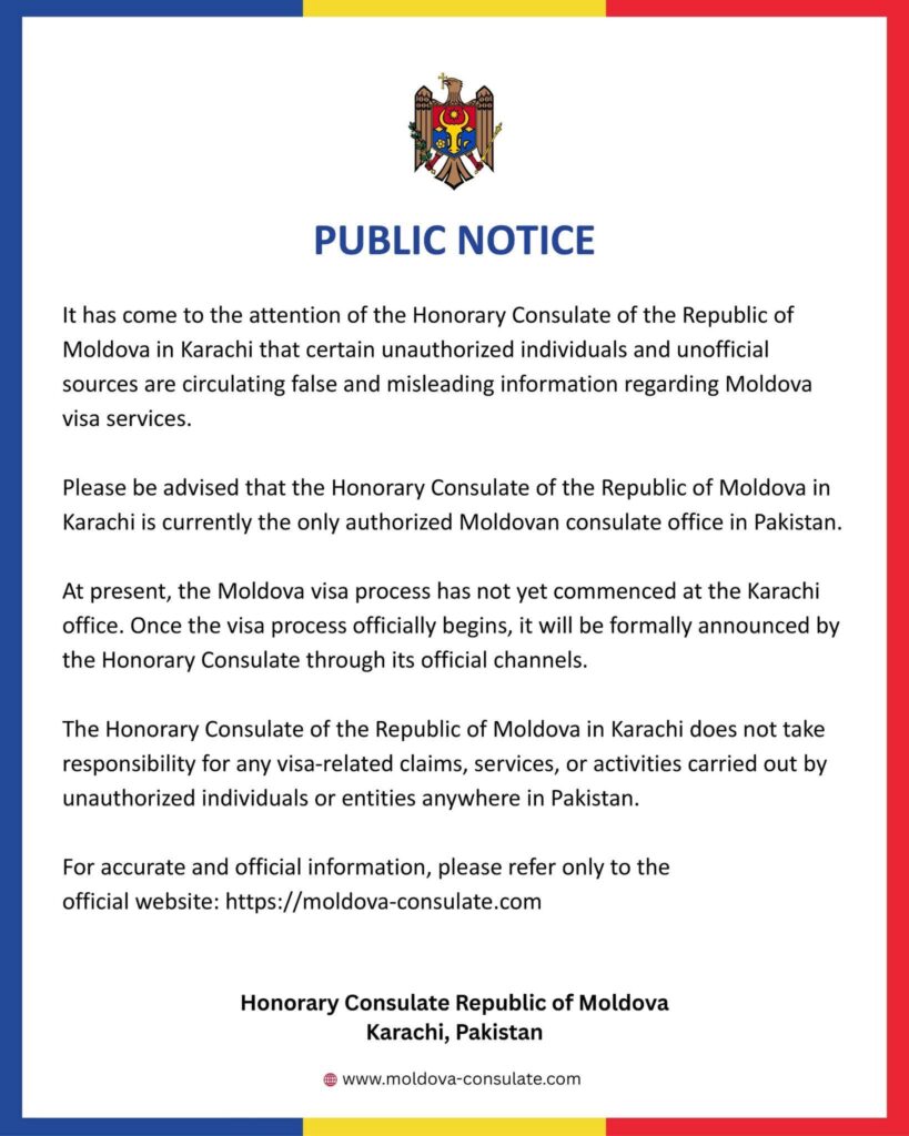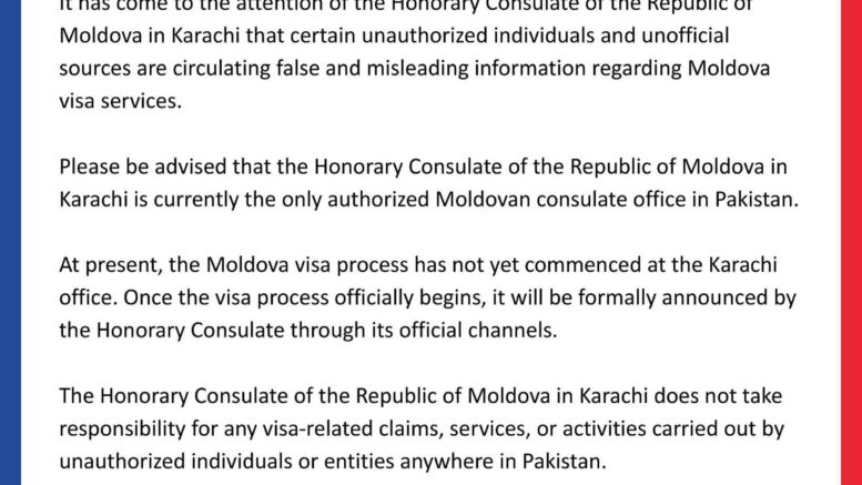 The Honorary Consulate further clarified that the Moldova visa process has not yet commenced at its Karachi office. Any updates or official announcements regarding visa services will be shared exclusively through the Honorary Consulate’s official communication channels.