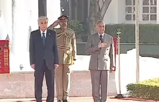 A formal welcome ceremony was held in honour of Kazakhstan President Kassym-Jomart Tokayev at the Prime Minister House in Islamabad on Wednesday. Prime Minister Shehbaz Sharif welcomed the Kazakh president at his office where national anthems of the two countries were played. Later, a smartly turned out contingent of Armed Forces presented guard of honour to the visiting dignitary. Prime Minister Shehbaz Sharif and the President of Kazakhstan will hold bilateral and delegation-level talks today. Memorandums of Understanding (MoUs) and agreements in several sectors will also be signed between the two countries. Kazakh President Kassym-Jomart Tokayev arrived in Pakistan Tuesday on a two-day official visit, aimed at strengthening bilateral ties between the two countries. President Asif Ali Zardari and Prime Minister Shehbaz Sharif received the visiting dignitary at Nur Khan Air Base. President Tokayev is accompanied by a high-level delegation, including senior ministers and government officials. Separately, President Asif Ali Zardari will confer Nishan-e-Pakistan, the country’s highest civilian award, on the Presidents of Kazakhstan and Uzbekistan. The award ceremony will be held at the Presidential Palace in Islamabad. According to officials, the honour is being conferred to promote bilateral relations, friendship, and cooperation between Pakistan and the two Central Asian states. A dignified ceremony will be followed by an official banquet in honor of the distinguished guests.