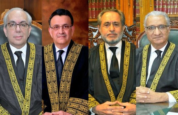 The initial bench comprised Chief Justice of Pakistan (CJP) Umar Ata Bandial, Justice Ijaz Ul Ahsan, Justice Munib Akhtar, Justice Khan, and Justice Mandokhail. It held three hearings on the matter.
