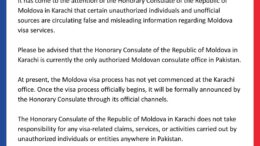 Karachi (DP News): The Honorary Consulate of the Republic of Moldova in Karachi has issued an official clarification, informing citizens that the Karachi office is…